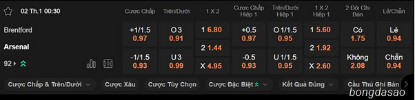 Mức chấp dành cho Arsenal ở trận đấu đầu tiên trong năm 2025 đang là – 1/1.5. Dù làm khách nhưng với đẳng cấp vượt trội và lịch sử đối đầu áp đảo, Pháo Thủ rõ ràng là cái tên sáng giá hơn cho 3 điểm. Phong độ hiện tại của họ cũng hoàn toàn vượt trội so với chủ nhà. Theo TLCA, Arsenal đã thắng 6/10 kèo đấu gần đây. Trong khi đó Brentford đang gây thất vọng khi thua 3 và chỉ thắng 3/6 kèo đấu mới nhất. Cộng với lực lượng sứt mẻ trầm trọng, khả năng Brentford trụ vững trước hàng công đã ghi 35 bàn của Arsenal mùa này là không cao. Cửa Trên do đó đang được tin tưởng hơn ở trận này.