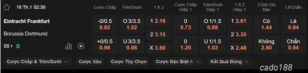 Frankfurt vs Dortmund, 02h30 ngày 18/01