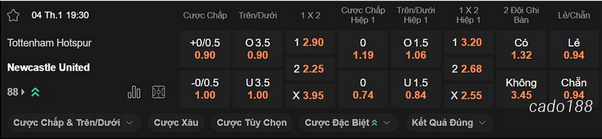 Hiện tại 188bet đang xếp Tottenham ở cửa Dưới trong màn tiếp đón Newcastle tối thứ 7 tuần này. Cụ thể mức chấp dành cho Gà trống đang là + 0/0.5. Họ hiện kém Newcastle tới 8 điểm. Quan trọng hơn là về mặt phong độ, Tottenham kém xa đối thủ từ vùng Đông bắc nước Anh. Tottenham đã thua tới 8 và chỉ thắng 2/10 kèo TLCA mới nhất. Newcastle lại vượt 6 trong số 7 kèo TLCA gần đây. Họ cũng thắng 4, hòa 1 và chỉ thua 1/6 kèo TLCA gần nhất khi 2 CLB gặp nhau. Do đó cửa thắng của Chích chòe đang được đánh giá khá cao.