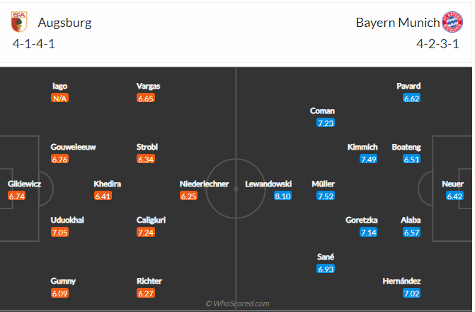 Bayern Munich chơi không được tốt mùa giải này nhưng chừng đó cũng là đủ để họ chiếm vị trí đầu bảng Bundesliga. Xem ra thầy trò HLV Hansi Flick vẫn rất mạnh so với phần còn lại của giải đấu và mục tiêu của đội bóng này đương nhiên là bảo vệ ngôi vương. Đến làm khách trên sân của Augsburg ở vòng đấu thứ 17, một chiến thắng là điều mà Bayern Munich hướng đến và khả năng họ sẽ không mấy khó khăn để giành chiến thắng trước đội chủ nhà bằng tỉ số cách biệt.