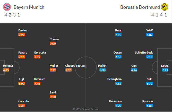 Đội hình dự kiến Bayern Munich vs Borussia Dortmund