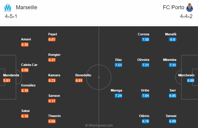 Đội hình dự kiến Marseille vs Porto: