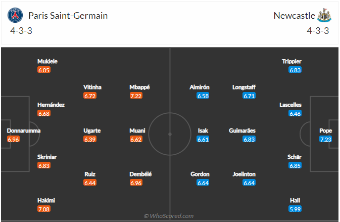 Đội hình dự kiến Paris Saint-Germain vs Newcastle United