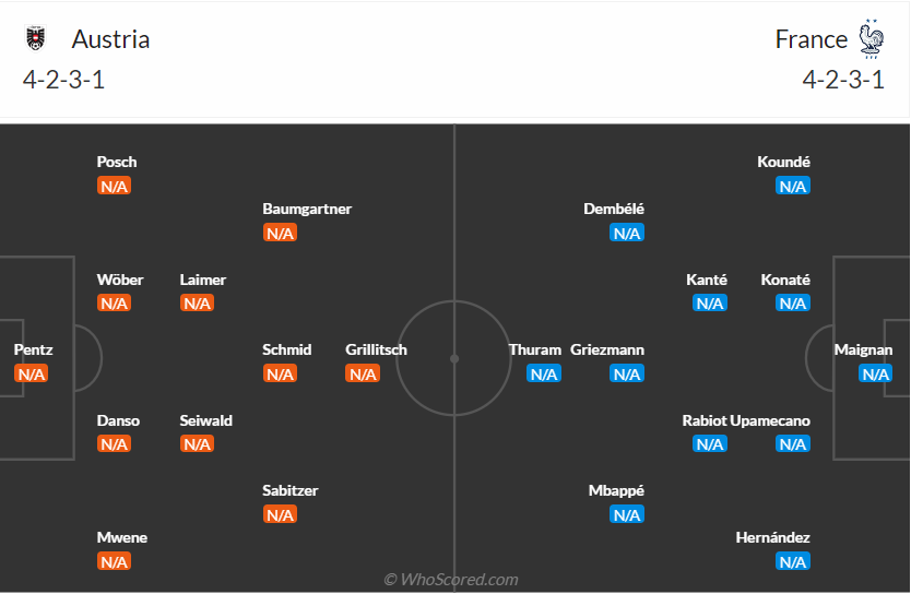 Dự đoán tỉ số trận đấu: Áo 0 – 2 Pháp (Chọn Pháp và Xỉu trận).