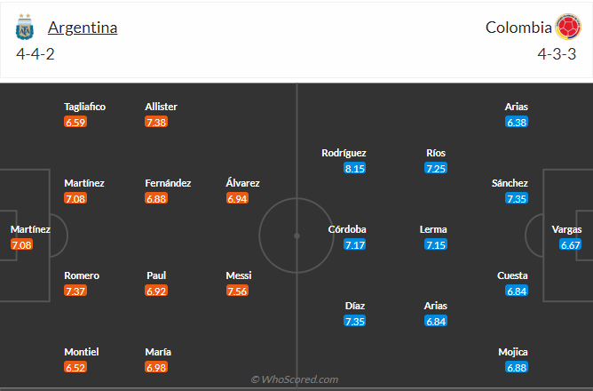 Tỷ lệ kèo trận đấu giữa Argentina vs Colombia.