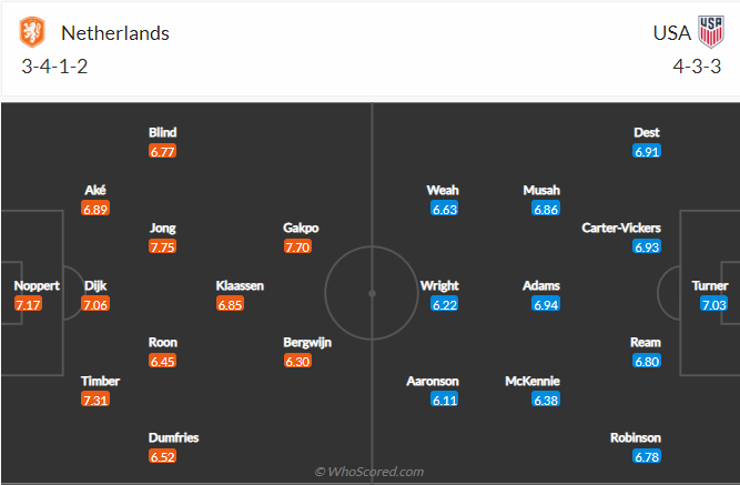 Sự tự tin sau chuỗi phong độ cao đang sở hữu, Hà Lan sẽ là đội hoàn toàn kiểm soát thế trận cũng như tạo ra rất nhiều cơ hội nguy hiểm về phía khung thành của Mỹ. Những sức ép liên tục đó sẽ mang về cho về cho Hà Lan ít nhất 2 bàn thắng dẫn trước trong 45 phút đầu tiên của trận đấu