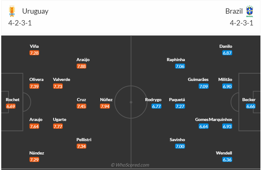 Dự đoán tỉ số trận đấu: Uruguay 1 – 0 Brazil (Chọn Uruguay và Xỉu trận).