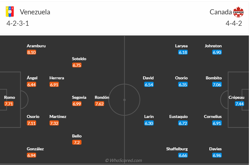 Venezuela đối đầu với Canada trong trận tứ kết Copa America, đây là trận đấu được đánh giá tương đối cân bằng và đội nào thể hiện phong độ xuất sắc hơn sẽ có nhiều cơ hội lọt vào bán kết.