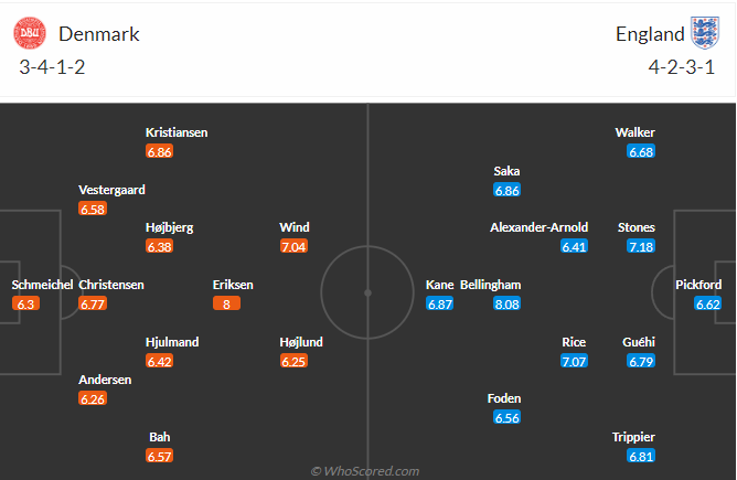 Sau khi gây ấn tượng mạnh tại Euro 2020, Đan Mạch tiếp tục khẳng định vị thế của mình trên trường quốc tế. Dưới sự dẫn dắt của huấn luyện viên Kasper Hjulmand, các cầu thủ Đan Mạch đã trải qua một hành trình ấn tượng để tiếp tục có mặt ở Đức năm nay. Tuy nhiên ở trận ra quân, Đan Mạch đã bất ngờ để Slovenia bị đánh giá là yếu nhất bảng cầm hòa qua đó gặp khó trong việc cạnh tranh tấm vé đi tiếp với 2 đối thủ rất mạnh là đội tuyển Anh và Serbia. Với phong độ không quá nổi bật khi chỉ thắng có 3/5 trận gần nhất sẽ rất khó để Đan Mạch có thể nghĩ đến chuyện làm nên bất ngờ trước đội tuyển Anh.