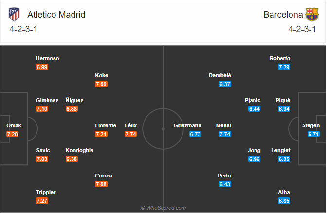 Đội hình dự kiến Atletico Madrid vs Barcelona: