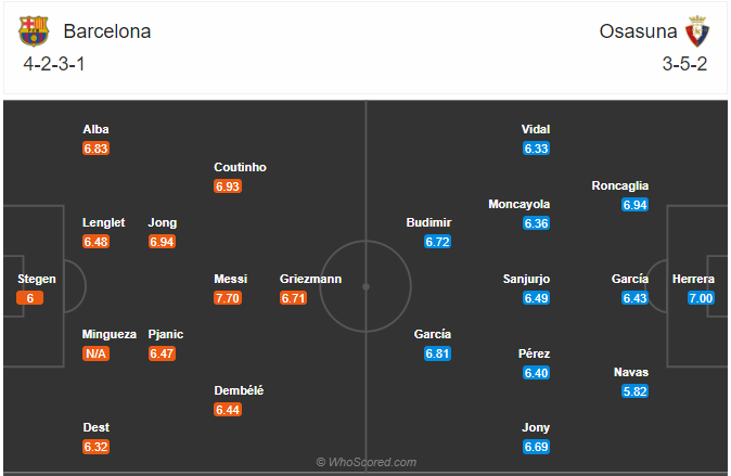 Đến làm khách trên sân của Barcelona, mục tiêu của Osasuna là có điểm mang về nhưng khả năng họ sẽ không thể có được điều mình cần bởi đội chủ nhà đang rất cần chiến thắng như con thú bị thương.