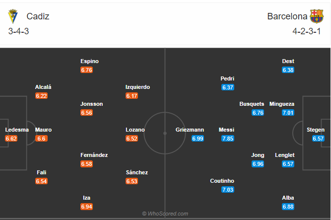 Barcelona sau chuỗi trận kém cỏi đã chơi tốt dần lên ở những vòng đấu gần đây khi thắng 2 trong 3 vòng đấu gần nhất. Dù vậy thì phong độ như hiện tại vẫn là chưa thể yên tâm với đội bóng như Barcelona nên mục tiêu của đội bóng này ở những vòng đấu sắp tới vẫn phải là chiến thắng. Đến làm khách trên sân của Cadiz, đội bóng mới lên hạng không phải thử thách quá khó khăn với thầy trò Ronald Koeman và nhiều khả năng họ sẽ có được điều mình cần.