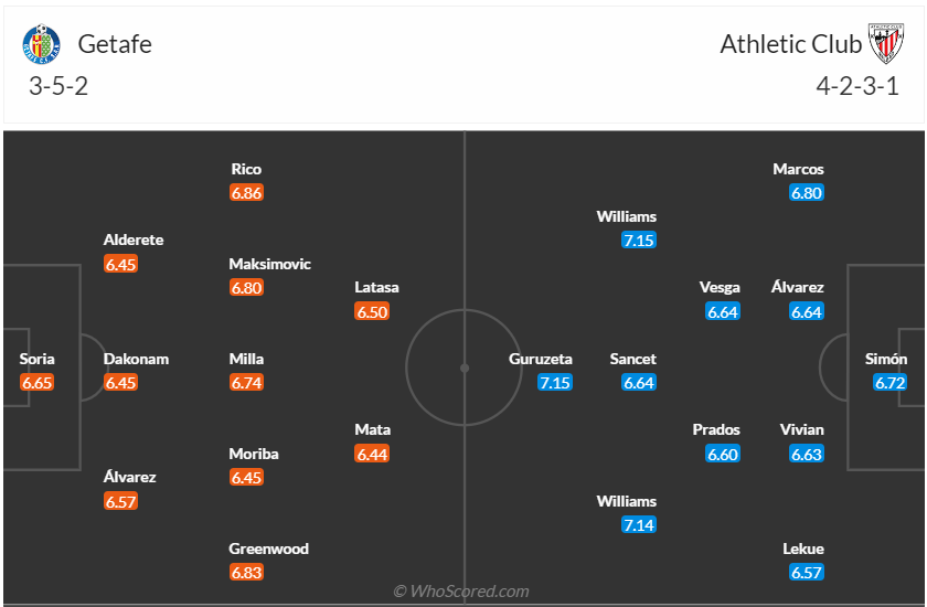 Getafe đang chơi tương đối ổn thời gian qua khi có 5 điểm trong 3 vòng gần nhất, điều này giúp họ leo lên vị trí thứ 10, một sự tiến bộ so với vị trí thứ 15 mùa trước. Với điểm số như hiện tại thì thầy trò HLV José Bordalás không phải lo lắng đến nguy cơ xuống hạng, các cầu thủ Getafe muốn tiếp tục có một kết quả tốt để kết thúc mùa giải ở nửa trên bảng xếp hạng nên họ đặt mục tiêu tối thiểu không thua ở vòng 34 này. Trước đối thủ Bilbao đang không có phong độ tốt thì nhiều khả năng Getafe sẽ có điểm trận này.