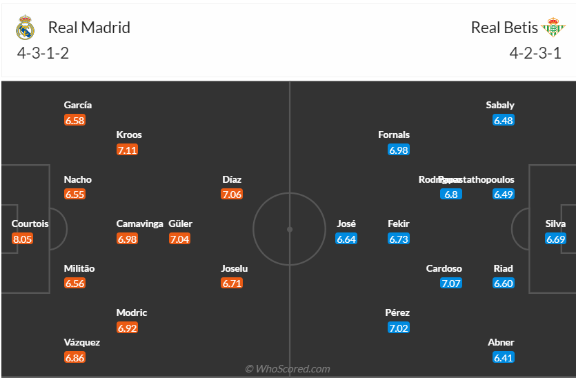Dự đoán tỉ số trận đấu: Real Madrid 3 – 2 Betis (Chọn Betis và Tài trận).