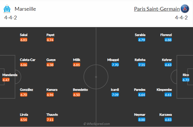 Đội hình dự kiến Marseille vs Paris Saint-Germain: