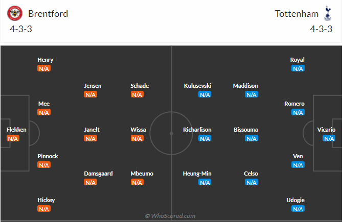 Đội hình dự kiến Brentford vs Tottenham Hotspur