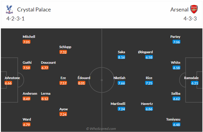 Trái ngược với tình hình ảm đạm của Crystal Palace, Arsenal đã có một mùa hè cực kì bận rộn để mang về những bản hợp đồng vô cùng chất lượng với David Raya, D. Rice, J. Timber và K. Havertz. Ở vòng 1 của giải Ngoại Hạng Anh, các Pháo thủ đã dễ dàng tìm kiếm được 1 chiến thắng trước Nottingham Forest. Ở vòng đấu thứ 2, thầy trò huấn luyện viên Mikel Arteta tiếp tục có 1 trận đấu dễ nữa khi chỉ phải làm khách của Crystal Palace đang gặp không ít vấn đề. Với phong độ bay cao khi toàn thắng ở cả 4 trận gần nhất, Arsenal có thừa sự tự tin để hướng tới việc có được 3 điểm trọn vẹn khi rời sân Selhurst Park.