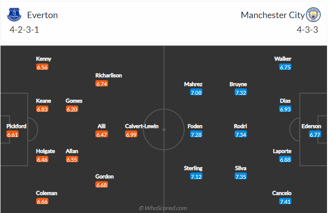Man City chỉ còn hơn Liverpool 3 điểm, đây là khoảng cách rất nhỏ so với tình hình cách đây 1 tháng, rõ ràng vị trí đầu bảng của thầy trò Pep Guardiola không còn an toàn nữa sau khi họ để thua trước Tottenham. Vì vậy đội bóng này cần ngay lập tức trở lại với mạch thắng để củng cố ngôi đầu bảng của mình. Đến làm khách trên sân của một Everton đang không có được phong độ tốt không phải điều khó khăn đối với Man City và nhiều khả năng các nhà Đương kim vô đich sẽ ra về với 3 điểm trọn vẹn.