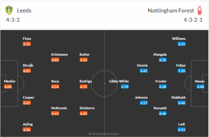 Đội hình dự kiến Leeds United vs Nottingham Forest