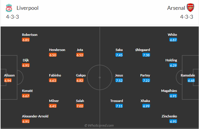 Đội hình dự kiến Liverpool vs Arsenal