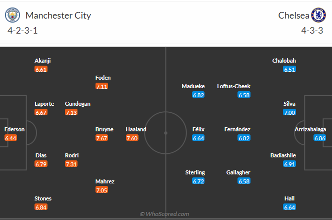 Đội hình dự kiến Manchester City vs Chelsea