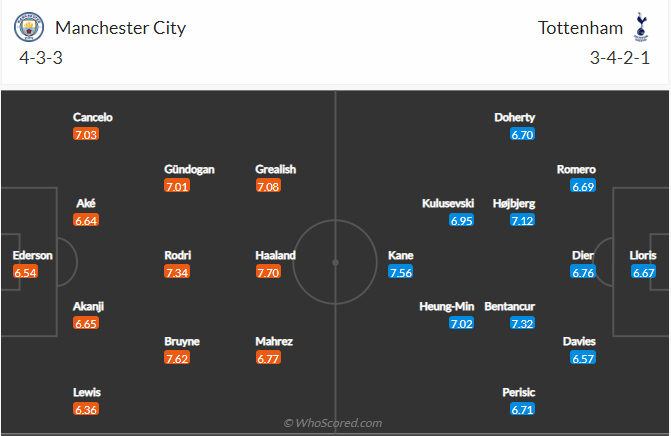 Đội hình dự kiến Manchester City vs Tottenham Hotspur
