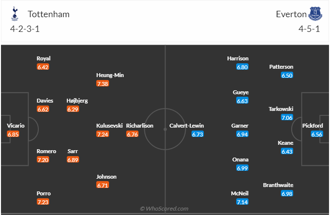 Everton đã trỗi dậy một cách vô cùng mạnh mẽ sau khi bị trừ 10 điểm, đội bóng của HLV Sean Dyche thắng cả 4 vòng đấu gần đây để thoát khỏi nhóm xuống hạng, họ đang đứng thứ 16 trên bảng xếp hạng và rất tự tin vào việc tiếp tục giành kết quả có lợi để có vị trí cao hơn nữa. Tuy nhiên ở vòng đấu thứ 18 này đối thủ của Everton là Tottenham, đội bóng cũng đang có sự trở lại đầy mạnh mẽ. Nhiều khả năng dù chơi đầy cố gắng nhưng Everton sẽ không thể chống lại một Tottenham đang chơi tự tin và có chất lượng đội hình tốt hơn.