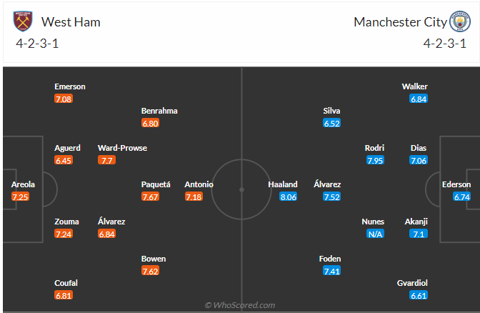 Đội hình dự kiến West Ham United vs Manchester City