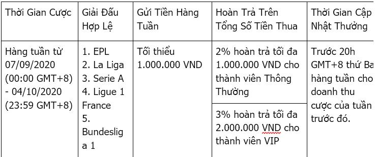 5. Thành viên chỉ có thể nhận cược miễn phí một lần duy nhất/tuần.