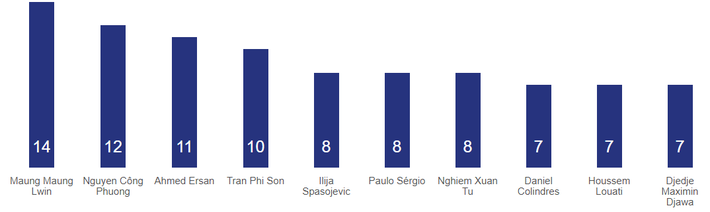 Trong top những cầu thủ tạo ra nhiều tình huống “dọn cỗ” cho đồng đội còn có 2 cái tên đến từ V-League khác là Phi Sơn (10 cơ hội) và Nghiêm Xuân Tú (7 cơ hội).