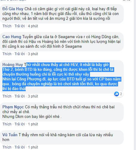 Tài Khoản Ahone kobacho k” Năm 2008 thua 10 trận giao hữu vào giải vô địch đấy thôi. Tôi cảm thấy may vì trận thua này để biết mình yếu ở đâu. Thắng 1 mạch tại Sea Games vì các đối thủ không đủ tầm nên bây giờ Việt Nam cần những trận kiểu này. Thất bại là mẹ của thành công. Chia buồn với các bạn“