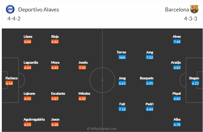 Barcelona đang trải qua mùa giải vô cùng khó khăn, việc chỉ đứng thứ 6 trên bảng xếp hạng như hiện tại là không thể chấp nhận được với thầy trò HLV Xavi. Phong độ thời gian gần đây của đội bóng này cũng là không tốt khi chỉ thắng 2 trong 6 vòng gần nhất, chính vì vậy Barcelona rất cần chiến thắng để cải thiện vị trí của mình. Đến làm khách trên sân của Alaves đang chơi tệ là cơ hội không thể tốt hơn cho Barcelona có 3 điểm, nhiều khả năng đội bóng xứ Catalan sẽ có một trận đấu tốt và thắng trận này.