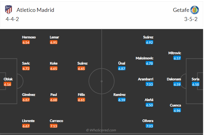 Atletico Madrid dù là đương kim vô địch nhưng đang chơi rất tệ mùa này, phong độ thất thường đã khiến đội bóng của HLV Diego Simeone rơi ra khỏi top 4. Vị trí thứ 5 như hiện tại đương nhiên là không thể khiến đội bóng này hài lòng nên họ cần ngay lập tức trở lại với mạch thắng nếu muốn bám đuổi các đội xếp trên. Tiếp Getafe trên sân nhà là cơ hội để Atletico Madrid giành chiến thắng, tuy nhiên đội khách đang có phong độ rất cao nên việc này không hề dễ thực hiện chút nào.