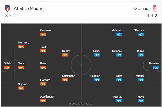 Atletico Madrid sẽ tiếp Granada trên sân nhà với mục tiêu giành chiến thắng để khởi đầu mùa giải một cách suôn sẻ. Đây không phải điều khó thực hiện bởi đội khách được đánh giá yếu hơn khá nhiều.