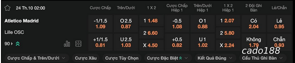 Soi kèo Atletico Madrid vs Lille 02h00 ngày 24/10