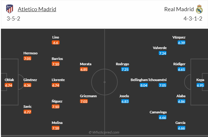Real Madrid đang toàn thắng từ đầu mùa giải đến giờ, ở cả La Liga và Champions League. Dù không phải lúc nào cũng chơi tốt nhưng kết quả mà thầy trò HLV Carlo Ancelotti có được luôn trọn vẹn, họ muốn tiếp tục duy trì chuỗi thành tích ấn tượng này nên trong chuyến làm khách trên sân Atletico Madrid thì 3 điểm vẫn là điều mà các cầu thủ Real Madrid hướng đến. Đây không phải trận đấu dễ dàng nhưng rất có thể bản lĩnh sẽ giúp đội khách có được kết quả tốt và ra về với 3 điểm trọn vẹn.