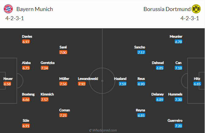 Đội hình dự kiến Bayern Munich vs Borussia Dortmund:
