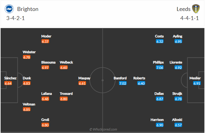 Dự đoán tỉ số trận đấu: Brighton 0 – 1 Leeds (Chọn Leeds và Xỉu trận).