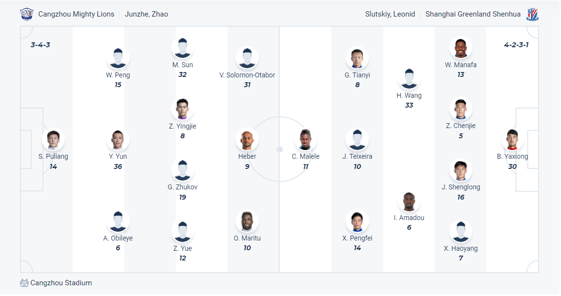 Cangzhou đang đứng thứ 13 trên bảng xếp hạng, vị trí tương đương với những gì đội bóng này làm được mùa trước và thể hiện khá rõ năng lực của thầy trò HLV Li Xiaopeng. Phong độ của các cầu thủ Cangzhou thời gian gần đây là không hề tốt khi không thể thắng 6 vòng đấu gần nhất (4 thua, 2 hòa), họ muốn có chiến thắng để chấm dứt chuỗi trận tệ hại đó. Tuy nhiên đối thủ của họ ở vòng 20 này lại là Shanghai Shenhua, đội bóng đang đua vô địch với chuỗi trận toàn thắng gần đây nên cơ hội có điểm là không cao. Nhiều khả năng Cangzhou sẽ lại để thua trận này.
