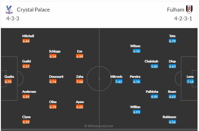 Crystal Palace đang đứng thứ 11 trên bảng xếp hạng, vị trí không tệ đối với đội bóng này. Họ vẫn chơi ổn định đúng với thực lực của mình khi thắng 3/6 vòng đấu gần nhất. Trận thua ở vòng đấu trước trước đối thủ nhóm cuối bảng khiến đội bóng của HLV Patrick Vieira không thể hài lòng và họ muốn nhanh chóng trở lại mạch chiến thắng để giữ vị trí của mình trên bảng xếp hạng. Fulham không phải đối thủ quá khó chơi và cũng không có phong độ cao nên khả năng Crystal Palace sẽ có trận đấu tốt để giành chiến thắng.