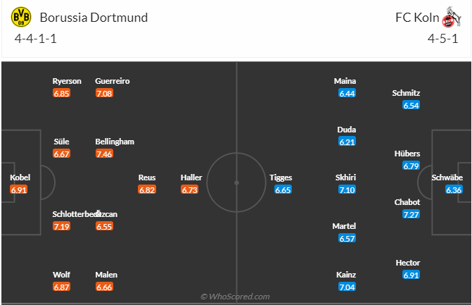 Dortmund sau chuỗi thắng liên tiếp từ sau World Cup đã để hòa ở vòng đấu trước, trận hòa khiến họ kém Bayern 2 điểm và đang đứng vị trí thứ 2. Mọi thứ chưa phải tệ với đội bóng của HLV Edin Terzić và họ muốn làm tốt hơn vị trí thứ 2 mùa giải trước, để thực hiện điều đó thì đội bóng này cần ngay lập tức trở lại với mạch chiến thắng ở vòng đấu thứ 25 này và Cologne là đối thủ phù hợp để thực hiện mục tiêu. Đội khách đang chơi không tốt nên nhiều khả năng Dortmund sẽ dễ dàng có được 3 điểm trọn vẹn.