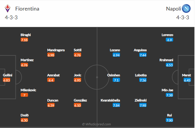 Napoli thắng cả 2 trận đấu đầu tiên và đang tạm thời đứng đầu bảng, đây là khởi đầu rất tốt đẹp để thầy trò HLV Luciano Spalletti có vị trí tốt hơn so với vị trí thứ 3 mùa trước. Trước việc có nhiều đối thủ cạnh tranh thì Napoli cần tiếp tục giành chiến thắng mới có thể bảo toàn vị trí hiện tại của mình nên khi đến làm khách trên sân Fioreintina ở vòng 3 thì 3 điểm là điều duy nhất mà họ hướng đến. Đây không phải trận cầu dễ dàng nhưng nhiều khả năng Napoli sẽ biết cách tận dụng cơ hội để ra về với 3 điểm trọn vẹn.