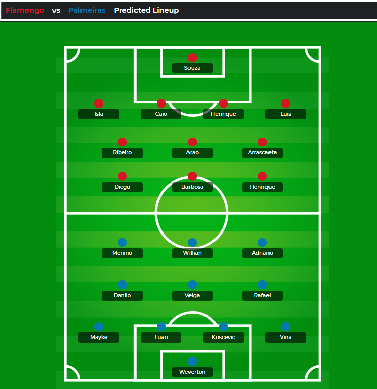 Đội hình dự kiến Flamengo vs Palmeiras: