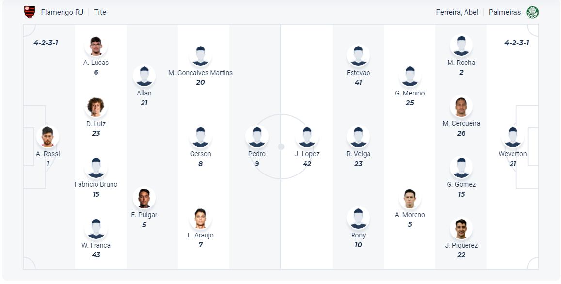 Palmeiras đang là đương kim vô địch Serie A, họ đã chơi rất thành công mùa giải trước. Mùa giải năm nay đội bóng của HLV Abel Ferreira vẫn đang cạnh tranh cho chức vô địch nhưng họ ở vị trí yếu thế hơn rất nhiều so với Flamengo, việc để thua 2 vòng đấu gần nhất là nguyên nhân cho điều này. Các cầu thủ Palmeras cần một chiến thắng để lấy lại sự tự tin, trận đối đầu với Flamengo ở cup Quốc gia là cơ hội tốt cho họ thực hiện điều đó. Tuy nhiên trước đối thủ đang có phong độ cao thì khả năng Palmeiras sẽ không thể đạt được mục đích.