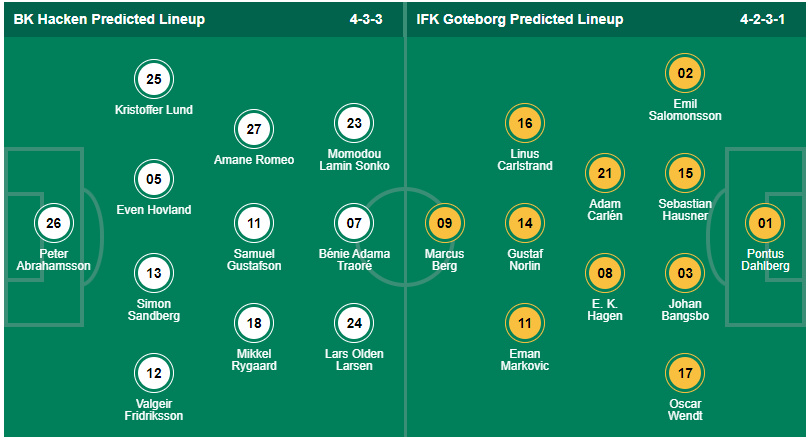 Hacken đang là đội đương kim vô địch của Thụy Điển mùa giải trước, nên bước vào mùa giải năm nay đội bóng của HLV Per-Mathias Høgmo muốn bảo vệ ngôi vương của mình. Tuy nhiên mọi thứ đang khởi đầu không tốt khi đội bóng này đã thua 3 trận sau 10 trận và kém đội đầu bảng những 6 điểm. Việc không thắng trong 2 trận gần nhất là minh chứng cho sự không ổn định của Hacken nên họ cần ngay lập tức trở lại với mạch chiến thắng để bám đuổi các đội xếp trên. Chỉ phải gặp Goteborg được đánh giá yếu hơn nhiều là cơ hội tốt cho Hacken giành 3 điểm và khả năng đội chủ nhà sẽ giành chiến thắng.