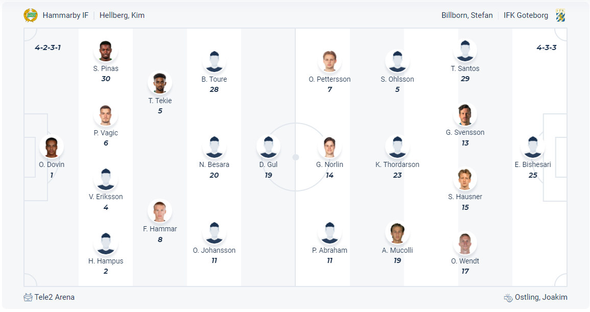 Hammarby đang đứng thứ 5 trên bảng xếp hạng, vị trí tiến bộ hơn đôi chút so với thứ 7 mùa trước. Vị trí này có được là nhờ chuỗi trận tốt gần đây khi thắng 4/6 vòng gần nhất, nếu tiếp tục chơi như vậy thì đội bóng của HLV Kim Hellberg sẽ còn có vị trí cao hơn nữa. Họ đặt mục tiêu giành thêm một chiến thắng nữa khi tiếp đón Goteborg trên sân nhà ở vòng đấu thứ 14 này, trước đối thủ yếu hơn và đang không có phong độ cao thì khả năng Hammarby sẽ có được điều mình cần.