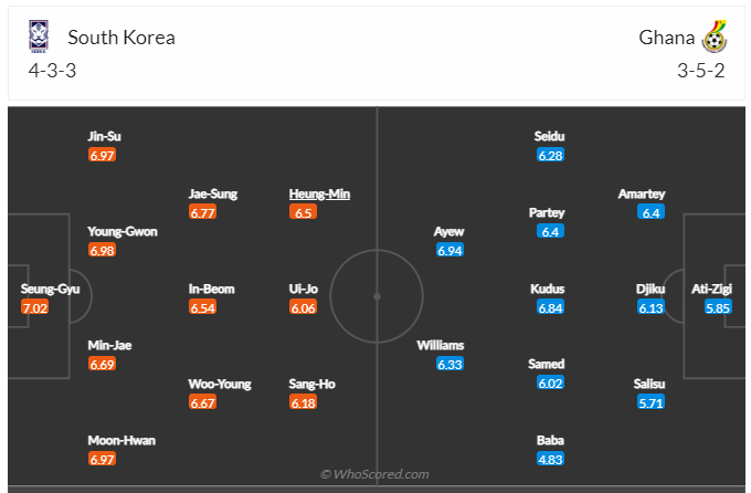 Dự đoán tỉ số trận đấu: Hàn Quốc 0 – 0 Ghana (Chọn Ghana và Xỉu trận).