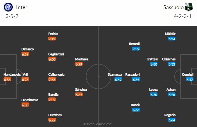 Inter không thắng ở 2 vòng gần đây nên đã mất ngôi đầu bảng vào tay đội bóng cùng thành phố Milan, tuy nhiên đội bóng của HLV Simone Inzaghi chỉ kém đối thủ 1 điểm và còn 1 trận chưa đấu nên mọi thứ vẫn nằm trong tay họ. Tuy nhiên các cầu thủ Inter không được phép tiếp tục mất điểm nếu không muốn mất đi lợi thế, nhất là khi vừa để thua tại Champions League khiến cơ hội đi tiếp ở đấu trường Châu âu là vô cùng mong manh. Chính vì vậy Inter sẽ rất quyết tâm giành chiến thắng trước Sassuolo để trở lại với mạch chiến thắng. Nhiều khả năng đội bóng chủ nhà sẽ chơi tốt trận này và có 3 điểm.
