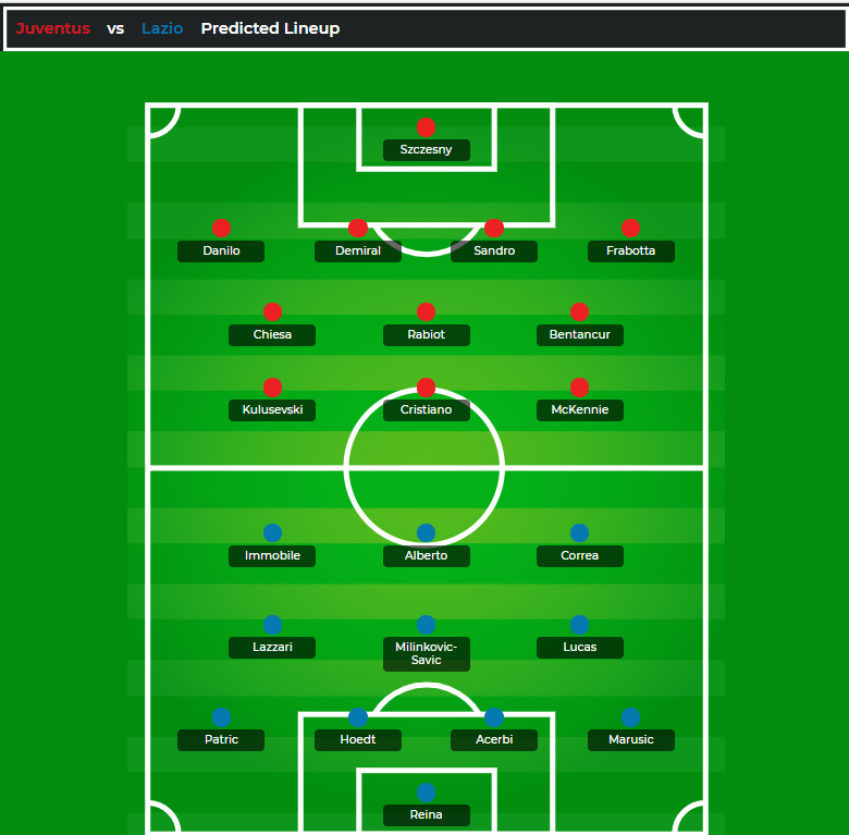 Lazio mùa trước chơi rất tốt và đã từng cạnh tranh ngôi đầu bảng với Juventus, nhưng rút cục những trận đấu không tốt cuối mùa khiến họ chỉ về đích ở vị trí thứ tư. Đây vẫn là vị trí tốt bởi thầy trò HLV Simone Inzaghi có vé dự Champions League. Tuy nhiên mùa bóng năm nay mọi thứ đã trở nên khó khăn hơn rất nhiều bởi đội bóng này chỉ đứng vị trí thứ 7 hiện tại với khoảng cách 6 điểm với vị trí thứ tư của Juventus. Chính vì vậy một chiến thắng trước Juventus sẽ là cách tốt nhất để Lazio tự mở cánh cửa dự Champions League cho mình. Tuy nhiên đây là điều rất khó khăn và nhiều khả năng họ sẽ không thể thực hiện được mong muốn.