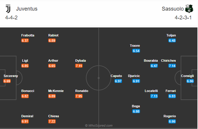 Sassuolo mùa bóng trước chỉ đứng ở vị trí thứ 8, tuy nhiên mùa bóng này đội bóng của HLV Roberto De Zerbi đang chơi rất tiến bộ khi tạm thời đứng thứ 5 trên bảng xếp hạng và có nhiều cơ hội để lọt vào top 4. Để làm được điều này thì Sassuolo cần giữ được phong độ tốt trong các trận đấu của mình. Tuy nhiên với việc phải đến làm khách trên sân của Juventus thì cơ hội có điểm của họ là không cao. Nhiều khả năng dù đã chơi đầy cố gắng nhưng Sassuolo vẫn sẽ phải nhận thất bại.